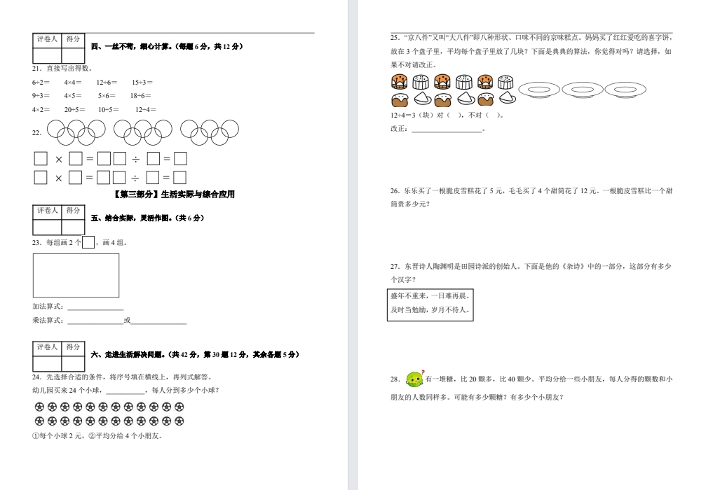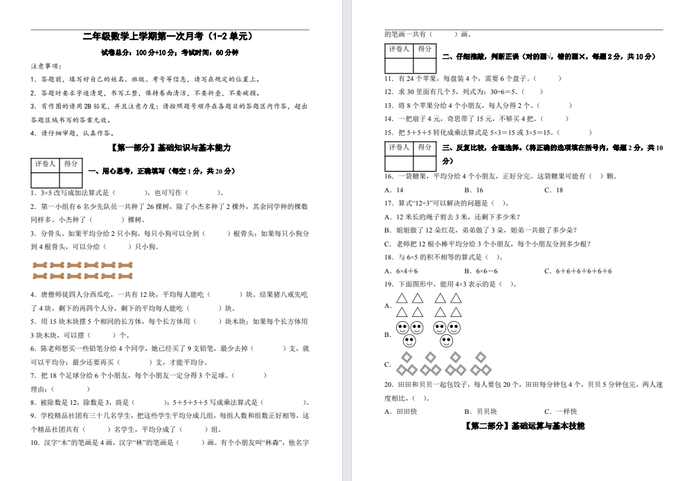 【二年级】上册数学10月月考试卷(新版).pdf